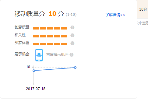 那么这些都操作完了之后,我们就要来做我们最重要的一步了,那就是养分,养分对于我们开车来说是非常重要的,大家都知道质量分关系到我们的点击扣费,那么我们把分养到10分就很必要了,养分怎么来养呢?我们只需要记住一点,那就是控制,控制什么呢?点击跟点击率,我们去卡人群、卡地域、卡时间都可以优化我们的点击率,在点击率高于行业的情况下,我们就得保证我们的点击增长,我们可以每天少量的增加日限额,这样我们的点击可以保证比昨天多,如果单个数据超过了昨天,那么我们就开精准,放慢这个词的速度,然后等其他的词超过昨天就OK啦,只要我们控制好数据环比上升,那么根据数据控制的进程来定,3天左右我们就可以上分啦。