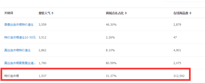 第二,大家发现没有,在我们搜索后宝贝标题,只描红了‘连衣裙’这个词根 ,而‘包邮’并没有被描红,这说明了什么?这说明‘包邮’是一个系统默认关键词。在买家搜索‘包邮’的时候,搜索引擎会直接默认展示包邮产品,在标题中有无‘包邮’,都是无所谓的,搜索引擎不会去甄别他。