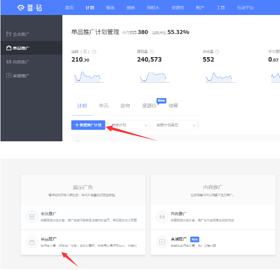 通过此图,发现这家店首页的转化比搜索高很多,所以可以针对首页进行开始进攻,主要利用一个工具:钻石展位,为什么不是选择直通车,原因在于钻展的定向人群可以更细分,操作步骤如下:
